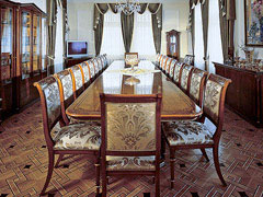 Kot je za stolov, ki so tapetništvo obvezna'mora se razlikujejo od tkanine m'pohištvo. Stoli so izbrani v nizu s table in figure jih tapetništvo, najprej, ne sme tekmovati z obrazcem design "kralj kosilo": enostavnejši obliki, lažje bi moral biti vzorec zadeve. Vendar pri izbiri materiala za tapetništvo stene, mora najprej razmisliti o kombinaciji s zavese.
